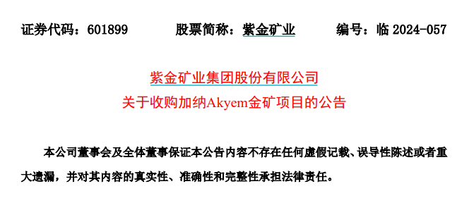 2024年10月9日,紫金礦業(yè)宣布擬出資10億美元(約70.71億人民幣)收購紐蒙特全資子公司Newmont Golden Ridge Ltd的100%股權,拿下加納Akyem金礦項目的全部權益。這是紫金礦業(yè)自2020年以來的第7宗金礦并購,標志著公司在全球金礦布局的持續(xù)加強。Akyem金礦擁有黃金資源量54.4噸,儲量約34.6噸,年均產(chǎn)金約5.8噸。