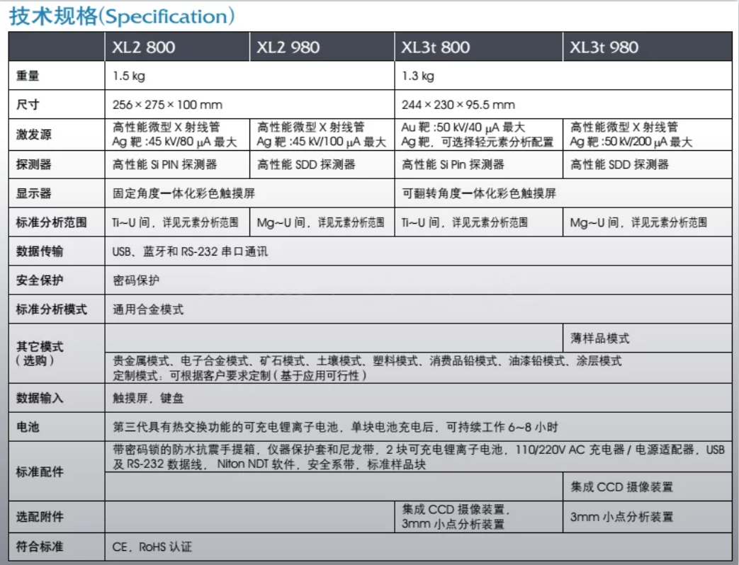 檢測(cè)模式:貴金屬、礦石、合金、塑料、土壤、涂層、消費(fèi)品鉛、油漆鉛等
