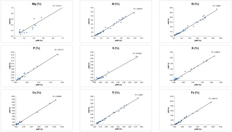圖2. 奧林巴斯手持式XRF光譜儀檢測(cè)大量煤認(rèn)證參考材料(CRM)獲得的結(jié)果與這些材料的標(biāo)稱(chēng)值高度吻合。上面的圖表表明對(duì)于重要元素:Mg、Al、Si、P、S、K、Ca、Ti和Fe,實(shí)驗(yàn)室認(rèn)證值和XRF分析儀獲得的數(shù)據(jù)值在準(zhǔn)確性和精確性方面都表現(xiàn)出高度的一致性。 數(shù)據(jù)表包含了繪制這些圖表所依據(jù)的實(shí)驗(yàn)室數(shù)據(jù)和XRF數(shù)據(jù)。數(shù)據(jù)承蒙新南威爾士大學(xué)生物和地球科學(xué)學(xué)院提供 - ACARP項(xiàng)目。