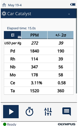 在進(jìn)行均質(zhì)化之前,回收行業(yè)應(yīng)使用Vanta XRF分析儀對相同類型的材料進(jìn)行分揀和分離。可分為三個或四個等級,例如氧傳感器、三元催化器、二元催化器和柴油微粒過濾器(DPF)。為改進(jìn)分類流程,可使用“偽元素”功能在分析儀數(shù)據(jù)庫中定義具體的等級。