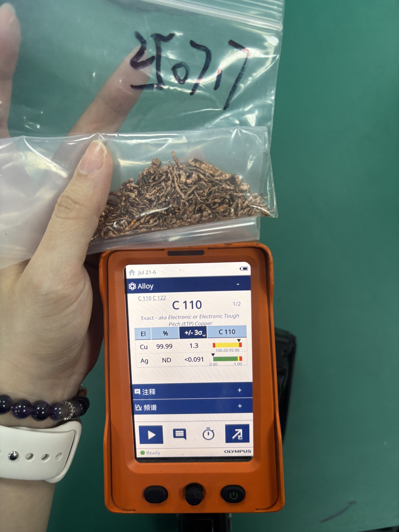 黃銅和紫銅,雖僅一字之差,價(jià)值與用途卻天差地別 —— 紫銅是銅含量≥99.9% 的高純度銅,導(dǎo)電導(dǎo)熱性極佳,是電線電纜、精密電子的核心原料;黃銅是銅鋅合金(鋅含量 3%-40%),強(qiáng)度硬度更高,多用于閥門、管道配件、機(jī)械零件。但實(shí)際場(chǎng)景中,氧化、鍍層、混合堆放等因素讓兩者難以用肉眼區(qū)分,一旦錯(cuò)用或錯(cuò)判,可能造成數(shù)萬(wàn)甚至數(shù)百萬(wàn)元損失。奧林巴斯手持式光譜儀,用硬核技術(shù)破解 “辨材難題”,30 秒精準(zhǔn)區(qū)分黃銅與紫銅,成為金屬加工、回收、貿(mào)易等行業(yè)的 “剛需工具”。