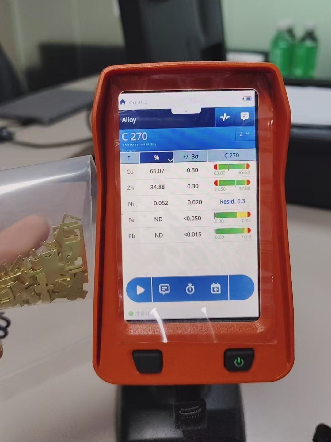 若檢測(cè)出銅、鋅雙主量元素(鋅含量 3%-40%),則為黃銅;若還檢測(cè)到鉛、錫等元素,就是特殊黃銅(如鉛黃銅、錫黃銅)。