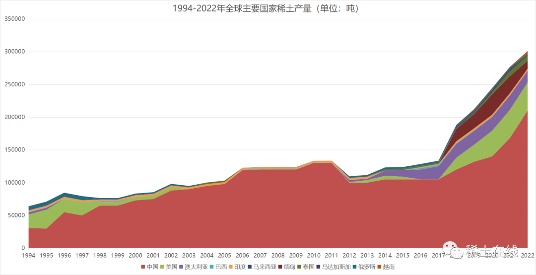 1、中國稀土礦產(chǎn)量占比70%,在其他主要供應(yīng)國持平或下降的背景下,同比增長25%,為全球稀土礦供給(本文未提及消費(fèi))提供保障,正在稀土產(chǎn)業(yè)鏈發(fā)揮決定性作用。同時也應(yīng)看到,全球多元化的稀土供應(yīng)也帶來了一定挑戰(zhàn)。