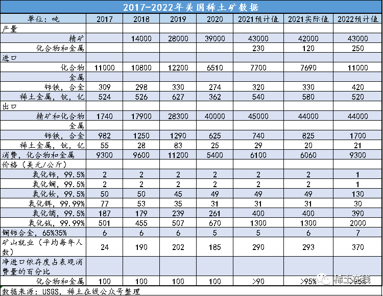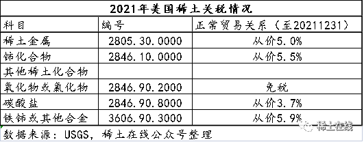 進(jìn)口化合物11000噸,增加43%,進(jìn)口金屬合計940噸。進(jìn)口稀土化合物及金屬估算值為2.0億美元,比2020年的1.6億美元大幅增加25%。(大量稀土作為永磁體用在制成品中進(jìn)口,未計算在內(nèi))
