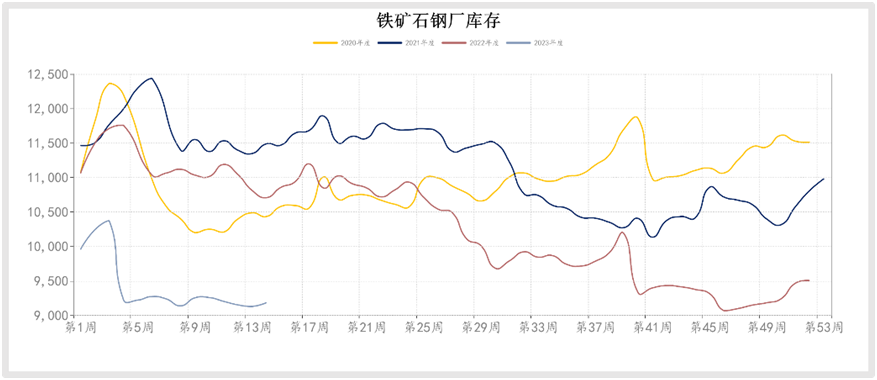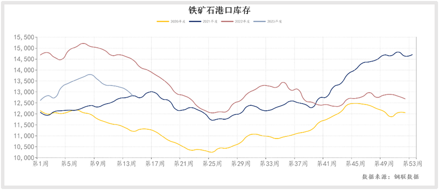 據(jù)mysteel數(shù)據(jù),4月初的一周,其統(tǒng)計(jì)的247家鋼廠高爐產(chǎn)能利用率91.2%,日均鐵水產(chǎn)量245.07萬噸,距離近五年的最高點(diǎn),即2020年8月份的253.3萬噸,只相差8.23萬噸。目前鋼廠鐵礦石總庫存與庫銷比維持低位,45港口鐵礦石庫存去庫308萬噸至1.32億噸。