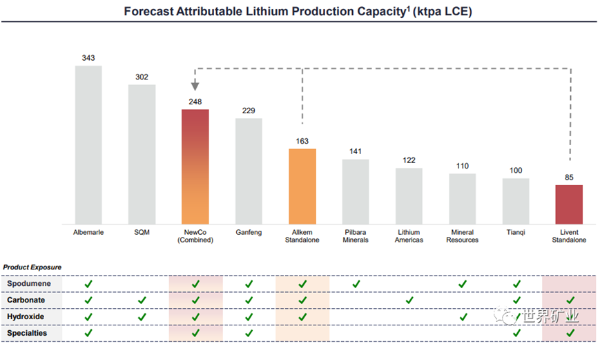 據(jù)測算,Allkem和Livent合并后,新公司預(yù)計產(chǎn)能達(dá)24.8萬噸碳酸鋰當(dāng)量(LCE),超過贛鋒鋰業(yè)(22.9萬噸)和天齊鋰業(yè)(10萬噸),位居世界第三,僅次于雅寶(Albemarle)和智利礦業(yè)化工(SQM)。