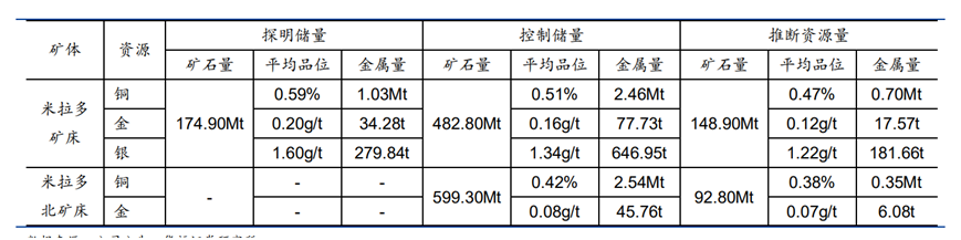 米拉多銅礦床一期于2021年達(dá)產(chǎn),銅礦石的處理能力為 2000萬噸/年,每年產(chǎn)出約9萬噸銅金屬量對應(yīng)的銅精礦,二期設(shè)計擴大到 2,640萬噸/年;米拉多北銅礦床二期設(shè)計采選能力 1980萬噸/年。米拉多銅礦整體二期項目預(yù)計于2025年6月建成投產(chǎn),擴建后總采選規(guī)模將達(dá)4620萬噸/年,預(yù)計每年產(chǎn)銅超20萬噸。