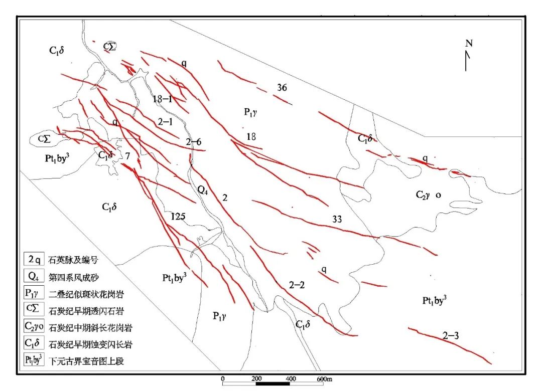 圖古日格金礦西礦區(qū)礦脈分布圖