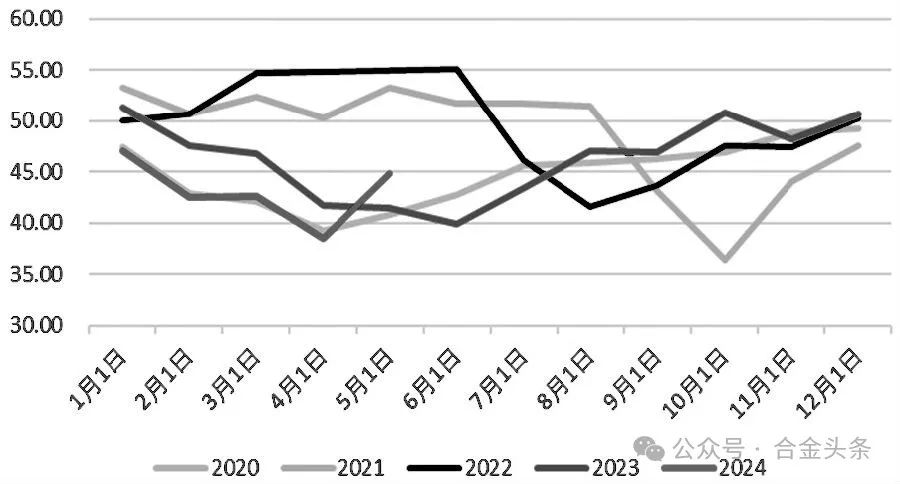鋼鐵行業(yè)在鐵合金下游需求中占比最大。近兩年受地產(chǎn)投資下行拖累,鋼鐵行業(yè)盈利能力持續(xù)下滑。根據(jù)統(tǒng)計(jì)局?jǐn)?shù)據(jù),2024年1—5月鋼鐵行業(yè)利潤率為-0.39%。如何提高盈利能力、降本增效是亟須面對的問題。對鋼廠來說,原料的采購和補(bǔ)庫是最關(guān)鍵的環(huán)節(jié),鐵合金作為“工業(yè)味精”,首當(dāng)其沖面臨需求收縮的沖擊。因此,鋼廠自去年開始便主動降低爐料庫存天數(shù),尤其是鐵合金庫存已從往年25~26天平均水平降至目前不足15天。