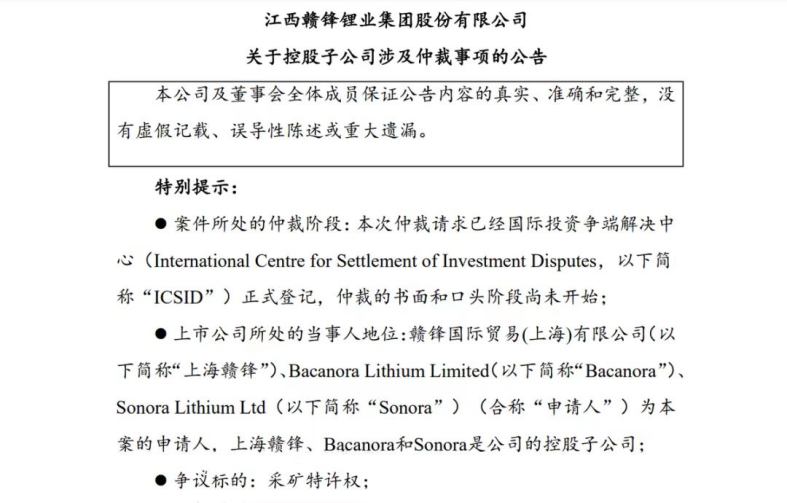 從2019年起,贛鋒鋰業(yè)多次增資收購墨西哥Sonora鋰黏土項(xiàng)目(以下簡(jiǎn)稱Sonora項(xiàng)目),終于在2022年8月買下Sonora鋰礦的所有股權(quán)。但在去年8月,墨西哥礦業(yè)總局發(fā)出通知取消贛鋒鋰業(yè)關(guān)聯(lián)公司Bacanora在墨西哥持有的Sonora項(xiàng)目的9個(gè)礦產(chǎn)特許權(quán),即贛鋒鋰業(yè)不再擁有在墨西哥的這9個(gè)鋰礦的經(jīng)營權(quán)和采礦權(quán)等。