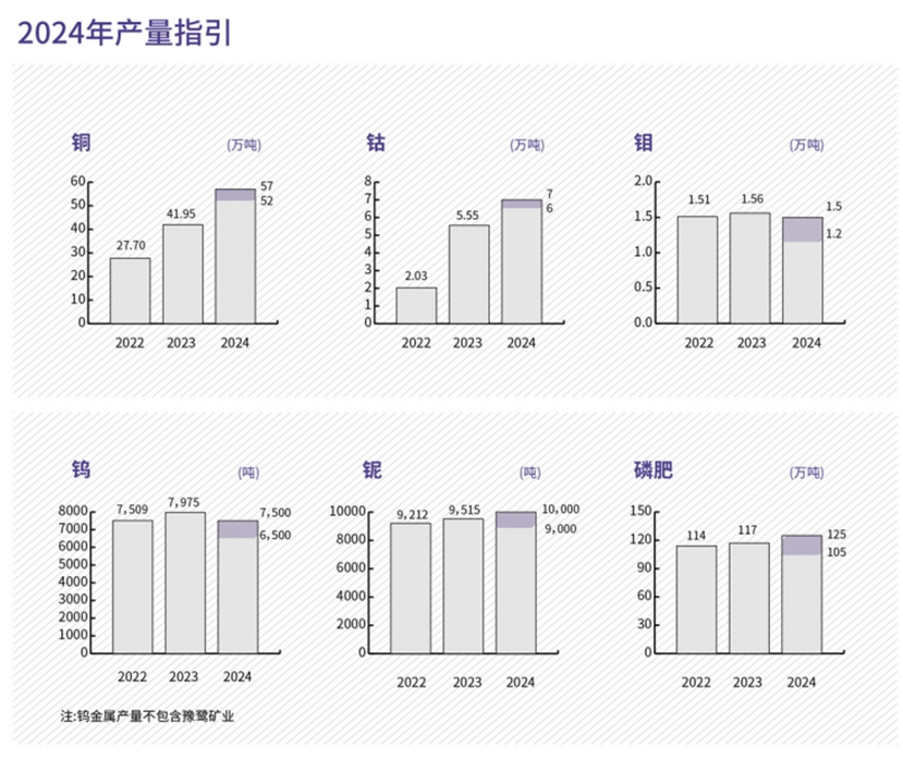 產(chǎn)量方面,隨著KFM項(xiàng)目和TFM項(xiàng)目均如期投產(chǎn),洛陽鉬業(yè)銅、鈷產(chǎn)品進(jìn)入“收獲期”。