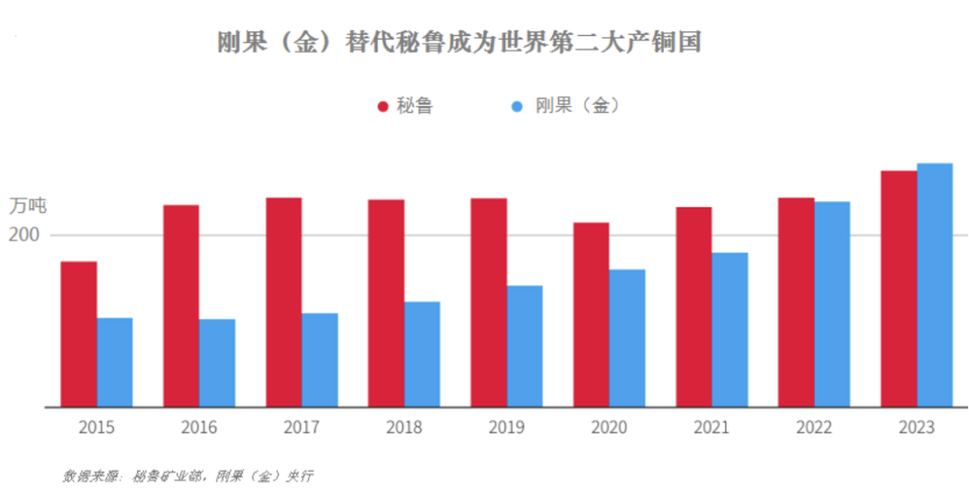 近年來,非洲加丹加銅鈷礦帶成為全球銅礦矚目的焦點(diǎn),尤其剛果(金),是近十年全球銅礦產(chǎn)量增長最快的國家,2023年已超過秘魯成為全球第二大產(chǎn)銅國,加之地處非洲中部,剛果(金)也有了“非洲心臟”之稱。