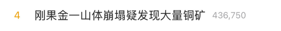 近日,有多家媒體報(bào)道,剛果(金)加丹加省一座山體崩塌,疑似發(fā)現(xiàn)大量銅礦,簡(jiǎn)直是老天爺賞飯吃。該消息也登上了當(dāng)日微博熱搜。