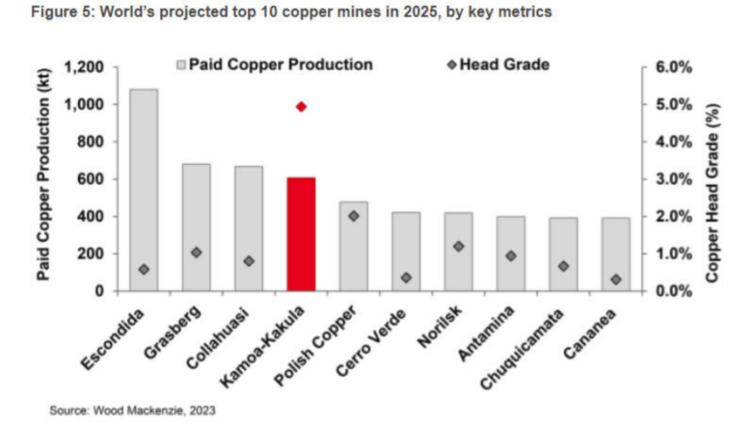 紫金礦業(yè)的卡莫阿 -卡庫(kù)拉銅礦以及科盧韋齊銅(鈷)礦,均位于剛果(金)的盧阿拉巴省,2024年卡莫阿-卡庫(kù)拉的銅精礦年產(chǎn)量月42.5-45萬(wàn)噸,當(dāng)?shù)V山三期擴(kuò)建完成后,未來(lái)10年平均產(chǎn)量將提升至約62萬(wàn)噸/年,使卡莫阿銅礦成為全球第4大銅礦山、非洲大陸最大銅礦。