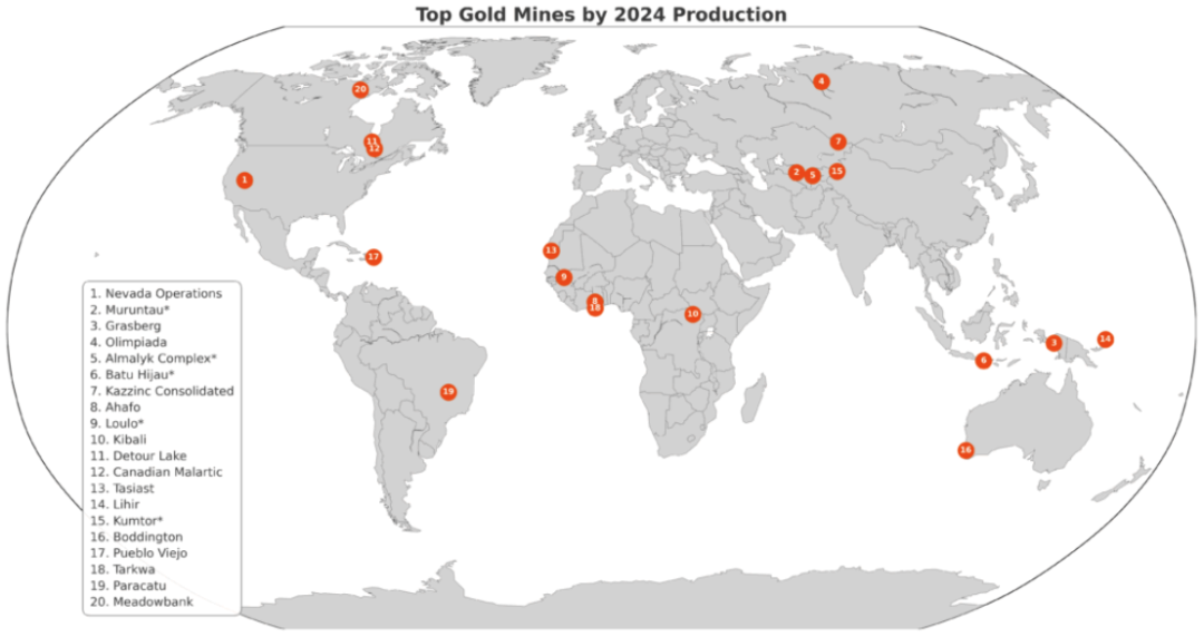 全球前二十大金礦主要分布在中亞,東南亞和非洲等地區(qū),中國(guó)無(wú)上榜金礦。