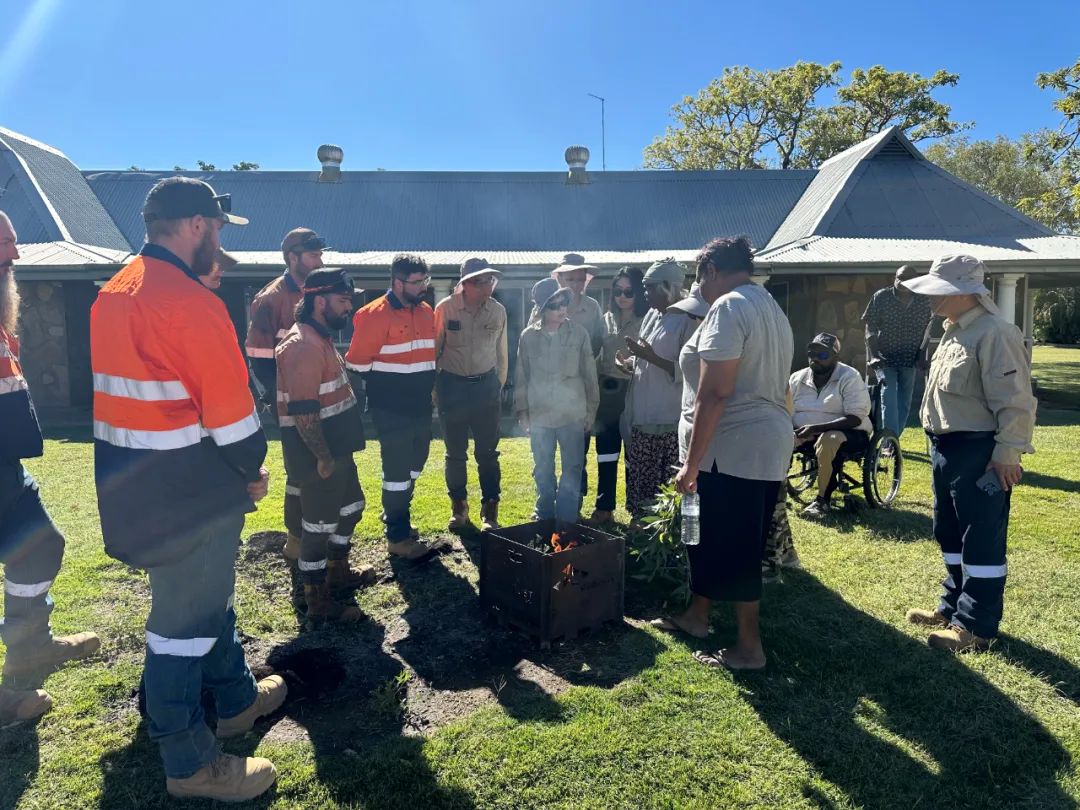 開鉆期間,當(dāng)?shù)毓拍岚驳贤林M織舉辦了莊嚴(yán)的傳統(tǒng)儀式和土著文化培訓(xùn),對(duì)中方人員的到來表示熱烈歡迎。項(xiàng)目組全體成員、子午線礦業(yè)有限公司董事Gina、鉆探公司代表等受邀參加歡迎儀式。土著長(zhǎng)老Helen女士發(fā)表講話,對(duì)西色國(guó)際多年來尊重、保護(hù)當(dāng)?shù)卦∶裎幕z產(chǎn)的舉措表示感謝,將繼續(xù)友好支持公司在該區(qū)的勘查活動(dòng)。