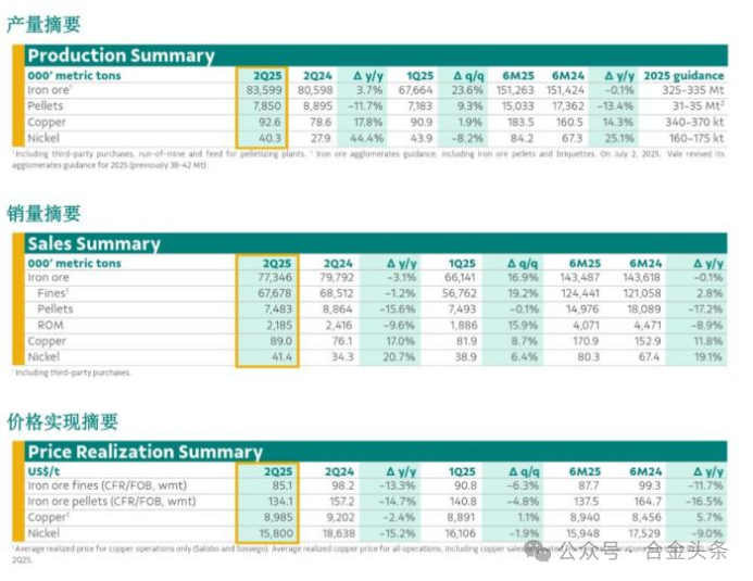 當(dāng)?shù)貢r間22日,總部位于巴西里約熱內(nèi)盧的礦業(yè)巨頭淡水河谷發(fā)布2025年第二季度產(chǎn)銷量報告稱,報告指出,鐵礦石業(yè)務(wù)方面,新資產(chǎn)逐步增產(chǎn),運營可靠性不斷提升,這些將支持公司更順利地完成2025年生產(chǎn)計劃。