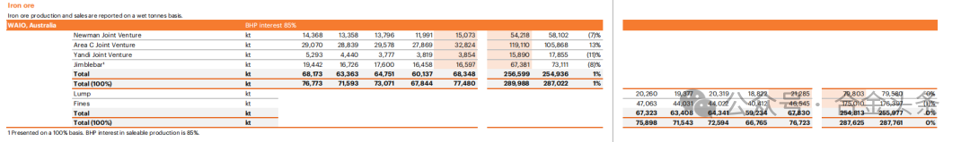 必和必拓2026財年(2025.07-2026.06)鐵礦石目標(biāo)指導(dǎo)量2.84-2.96億噸(100%基準(zhǔn))。