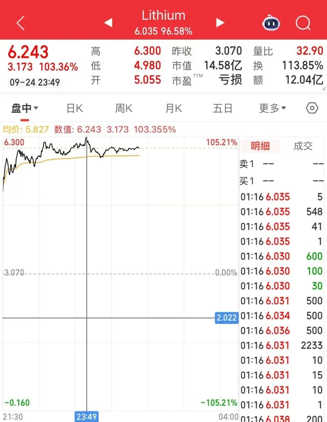 截至今晨收盤(pán),美洲鋰業(yè)股價(jià)上漲95.6%。